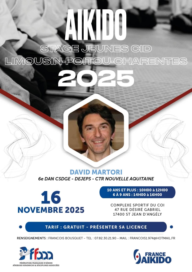 stage départemental dirigé par Didier Penissard, 5 octobre 2025 à NIORT salle de l'Acclameurce stage sera suivi de l'assemblée générale du C.I.D.--affiche--